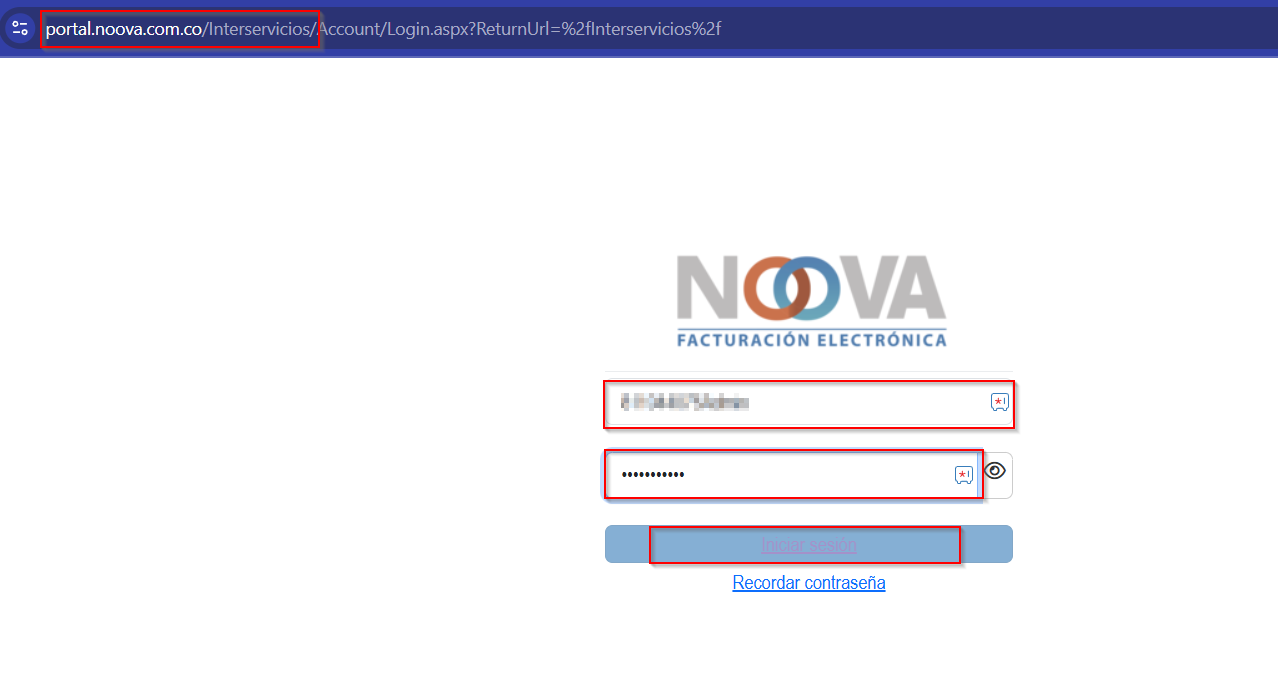 Ingrese a la plataforma Noova a través del siguiente enlace: http://portal.noova.com.co/interservicios/.