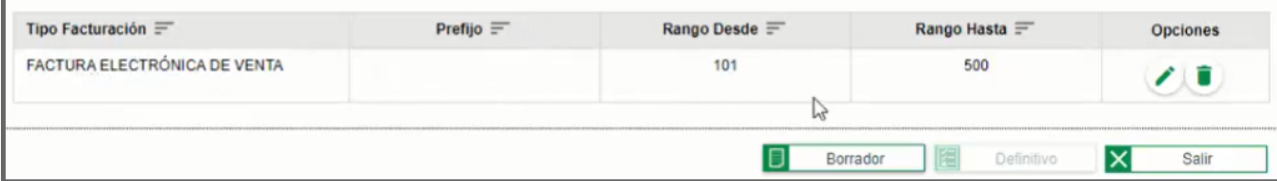 Paso 3: por último, es necesario asociar los rangos de numeración (asociar prefijos) de facturación en la Dian.