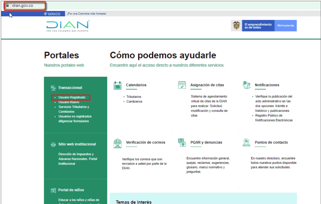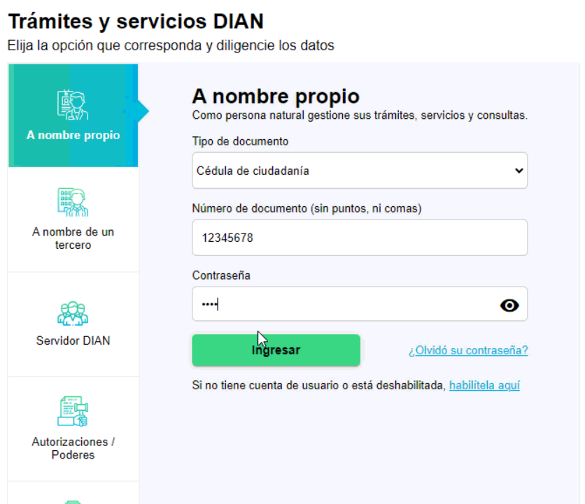 Importante: este proceso es responsabilidad del usuario y se realiza directamente en la página de la DIAN.