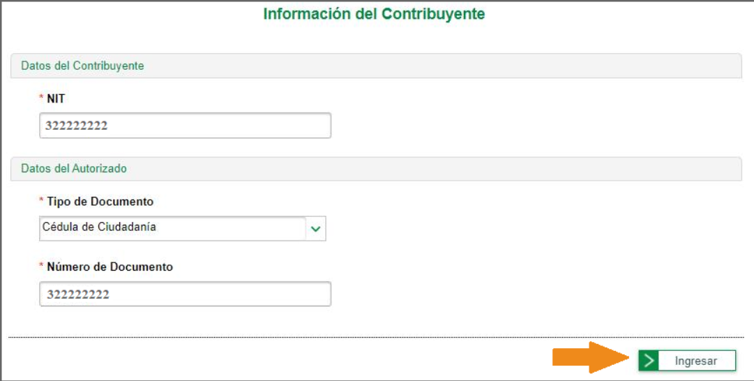4. Esto te llevará a la información del contribuyente, para continuar selecciona “Ingresar”.