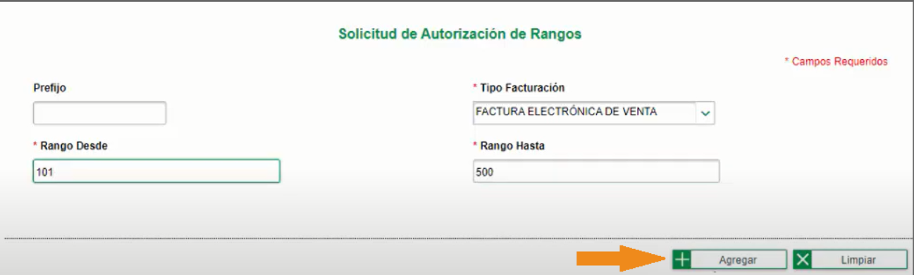 - Rango hasta: registras el número hasta el cual vas a solicitar la resolución.