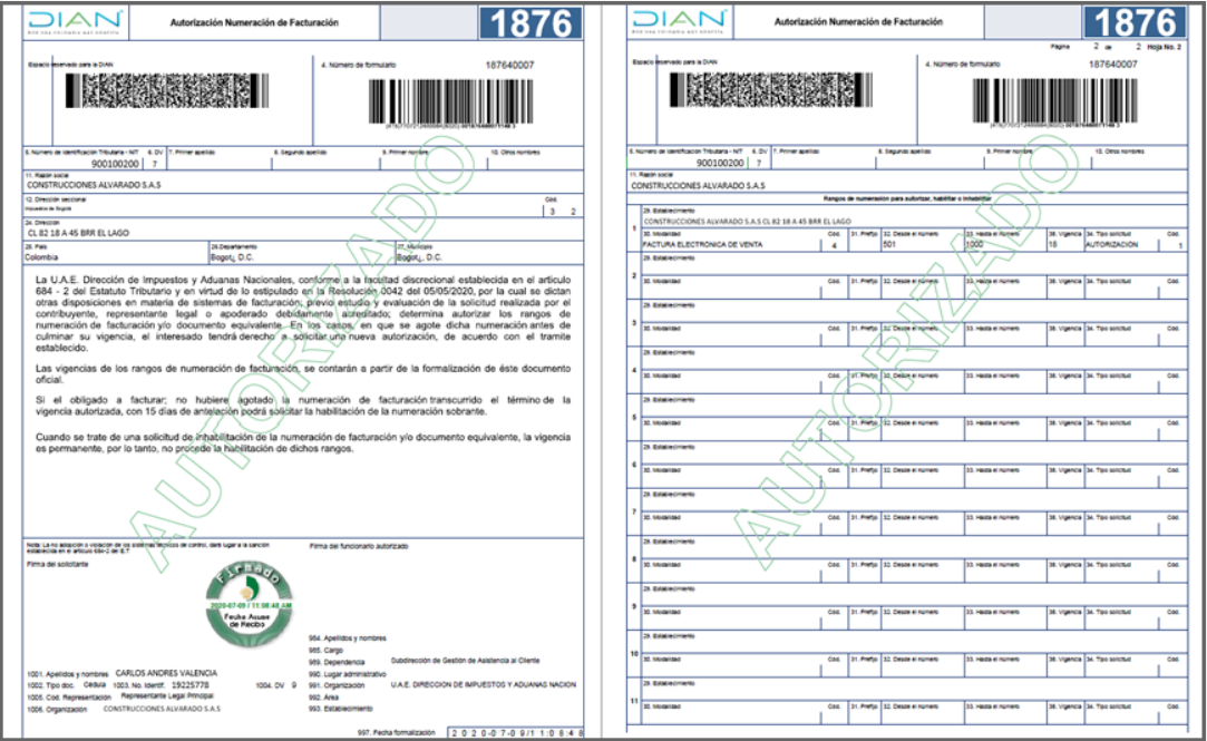 Importante: es obligatorio realizar las dos firmas, de lo contrario, esta no se visualizará en el momento de realizar la asociación de los rangos de numeración.