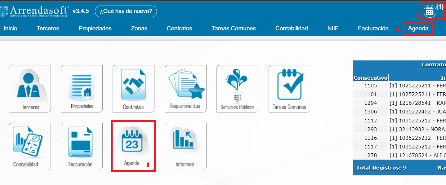 Paso 1: Acceda al módulo de Agenda, lo puede hacer de varias maneras: