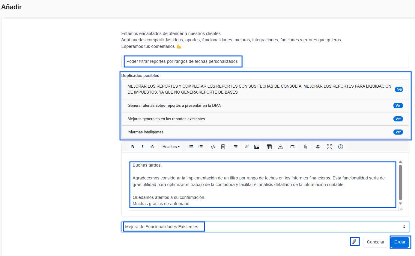 • ¡Adjunta imágenes si te ayuda a explicar!