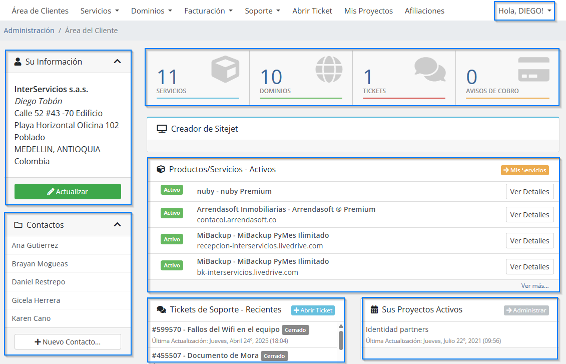 Bienvenido al Área de Clientes, una plataforma diseñada para que usted pueda gestionar de manera autónoma y eficiente todos los servicios contratados con nuestra compañía.