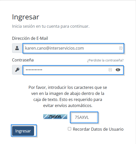 🔹 Marque "Recordar Datos" si desea un acceso más rápido en el futuro.