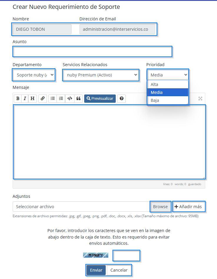 🔹 Enviar: Haga clic en "Enviar" o "Cancelar" si desea descartar.