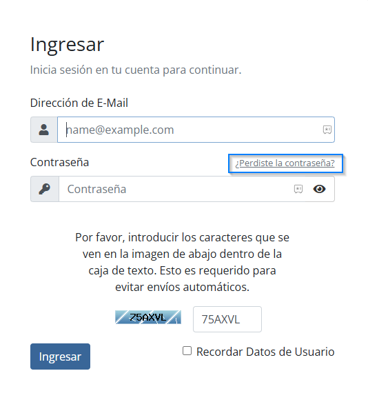 🔹 Si olvidó su contraseña, haga clic en "¿Perdiste la contraseña?"
