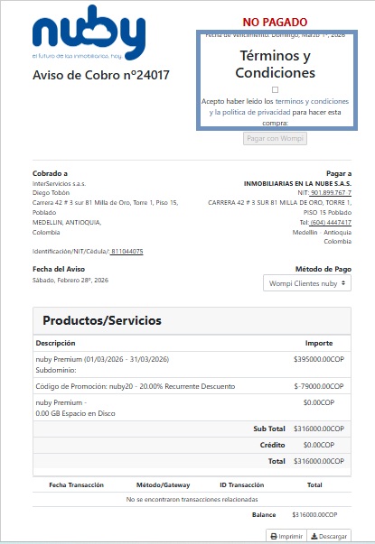 ¡Ahora pagar tus facturas es mucho más fácil! Habilitamos una nueva forma de pago en línea a través de Wompi, una plataforma segura, rápida y confiable. Desde ahora podrás realizar tus pagos directamente desde el sistema, con tarjeta débito o crédito, sin filas ni complicaciones. Te invitamos a aprovechar esta opción y facilitar tu proceso de pago.