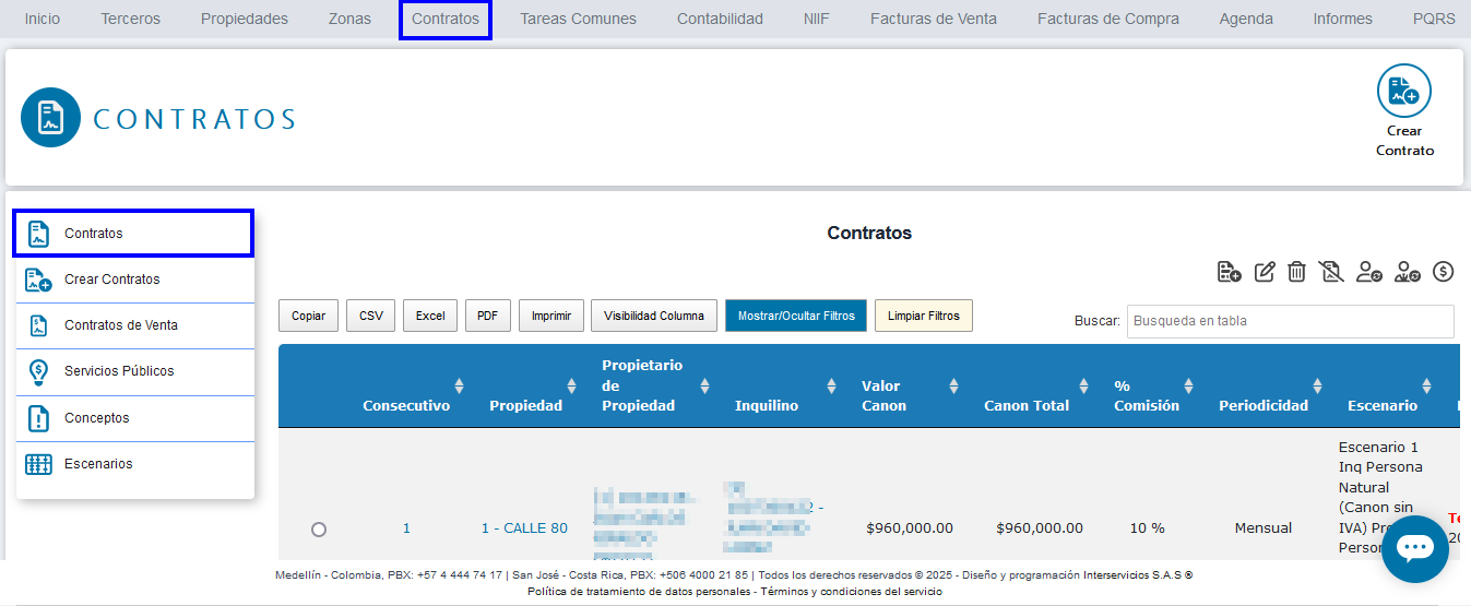 Ingrese al módulo Contratos y, en el submenú ubicado en el lado izquierdo, seleccione la opción Contratos.