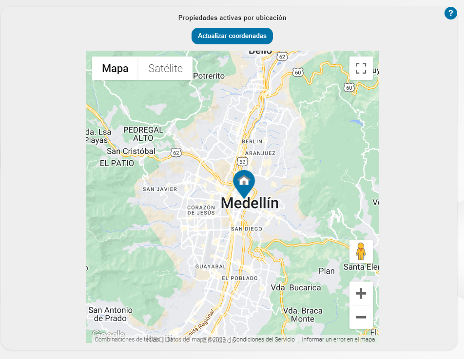 - Propiedades activas por ubicación: Se mostrará un mapa con las propiedades activas por zonas.