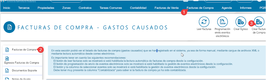 Paso 1: Ingresa a "Facturas de compra" y en el submenú de la izquierda, selecciona "Facturas de compra".