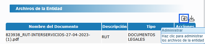 Este manual explica cómo gestionar los archivos asociados a la entidad en el sistema, un proceso esencial para mantener documentación legal, certificados o contratos organizados y accesibles. Podrás: