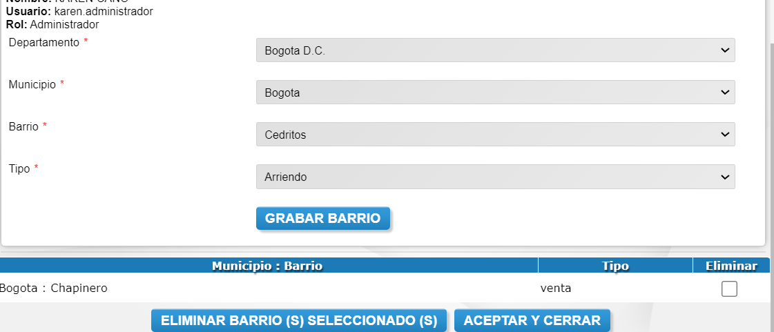 Paso 7: Haz clic en "Grabar barrio" para guardar la asignación.