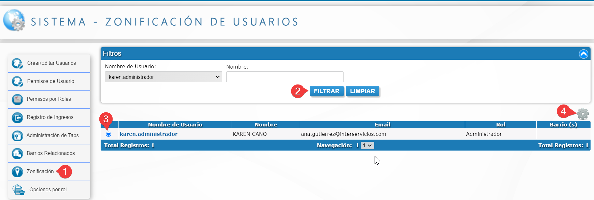 Paso 3: Utiliza el filtro para buscar al usuario (asesor o vendedor) al que quieras asignar un barrio.