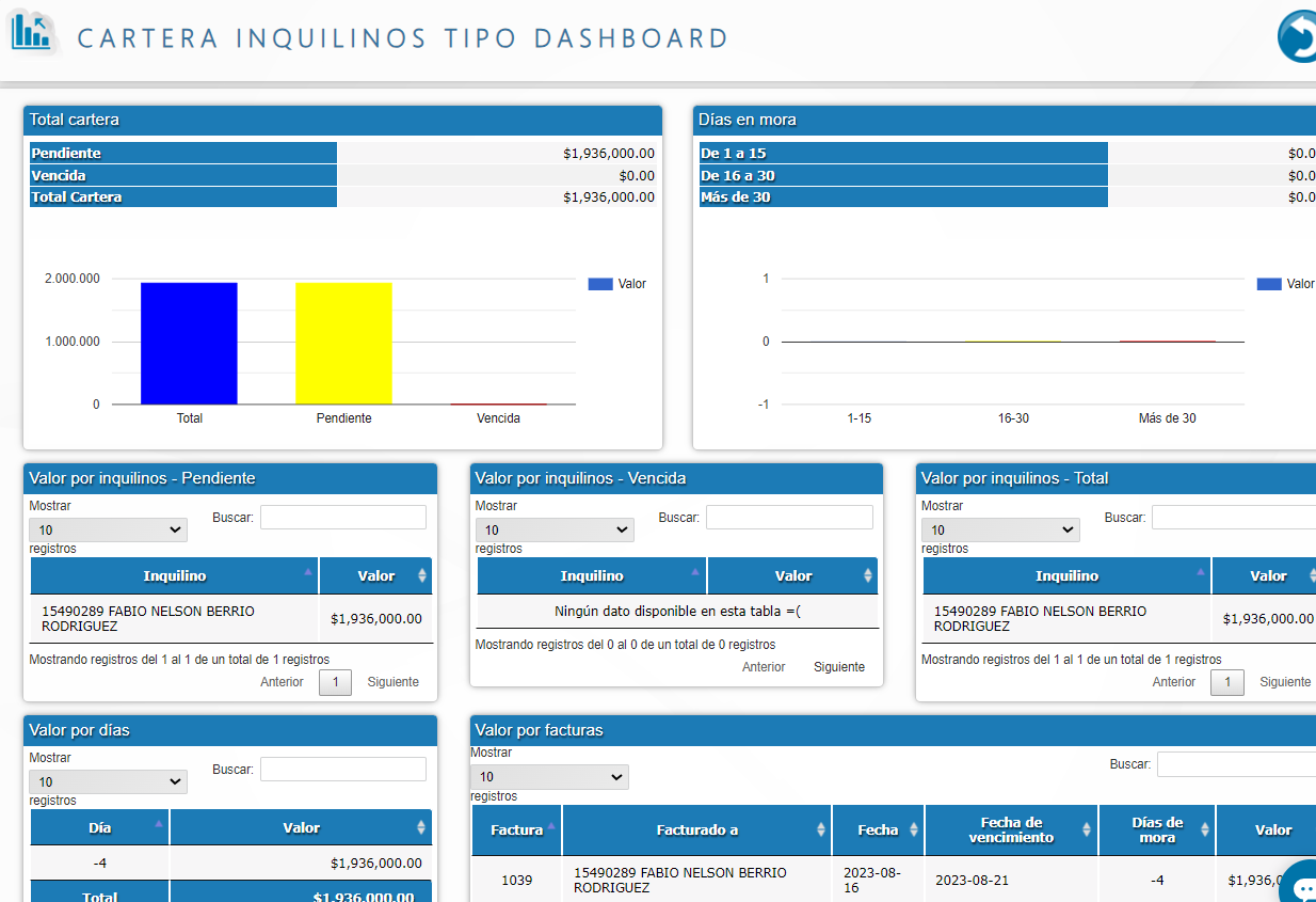 - Cartera inquilino tipo dashboard.