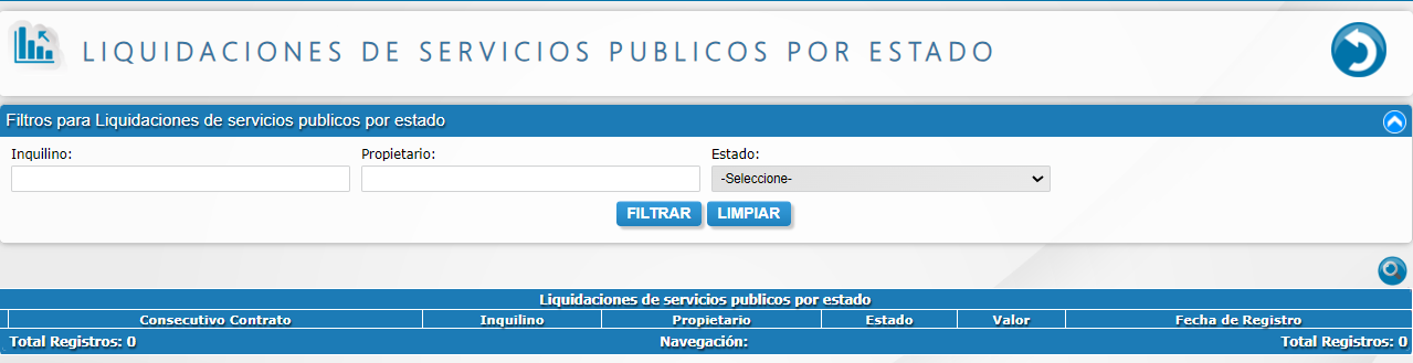 - Liquidaciones de servicios públicos por estado.