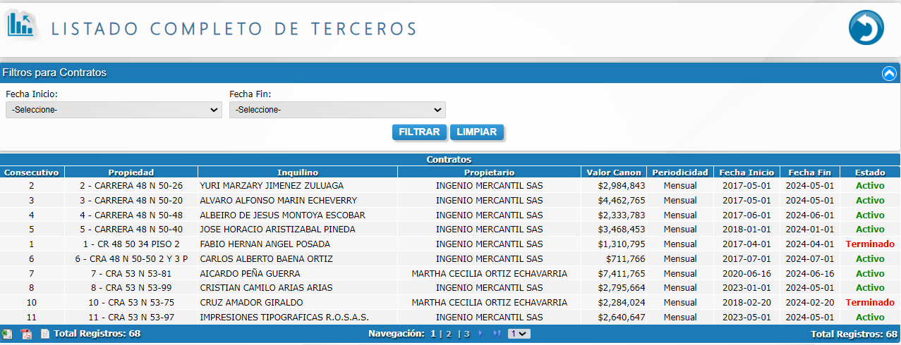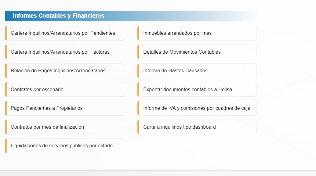 Aquí encontrará diferentes tipos de informes relacionados con el área contable y financiera de la inmobiliaria, a continuación encontrará un video con de la vista general de esta sección.