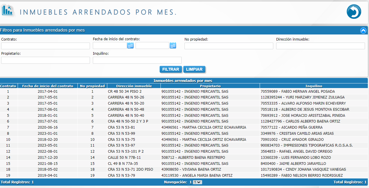 - inmuebles arrendados por mes.