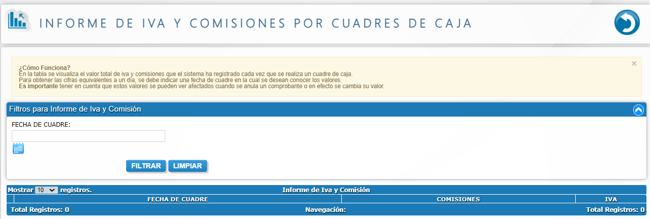 - Informe de iva y comisiones por cuadres de caja.