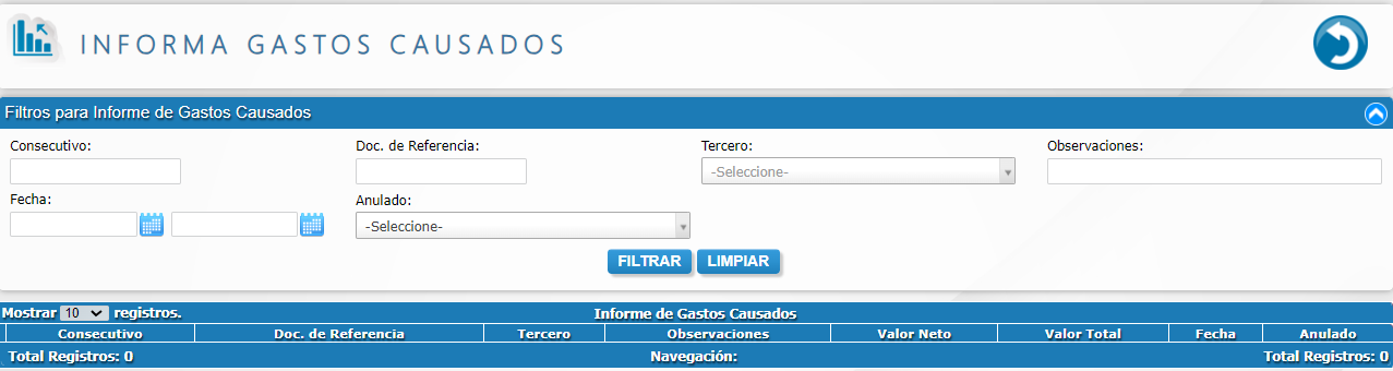 - Informe de gastos causados.