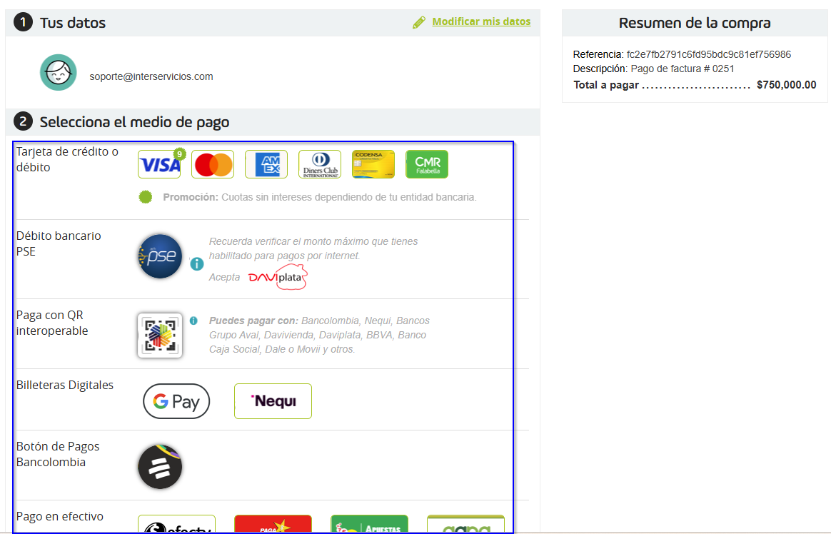 2. Elija su medio de pago preferido: