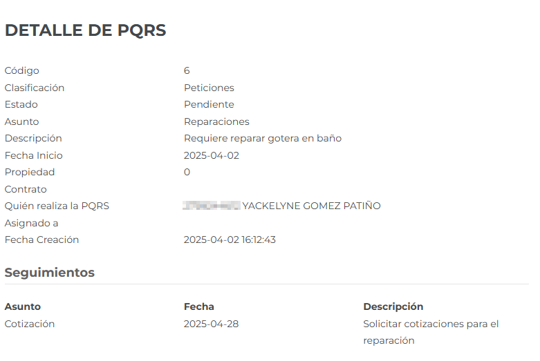 ✔ Gestionar PQRS (Peticiones, Quejas, Reclamos, Sugerencias)