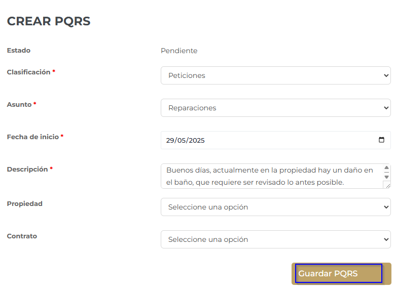 3. Haga clic en "Guardar PQRS"