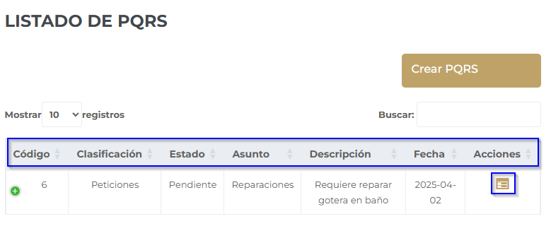 Paso 1: Ver PQRS existentes