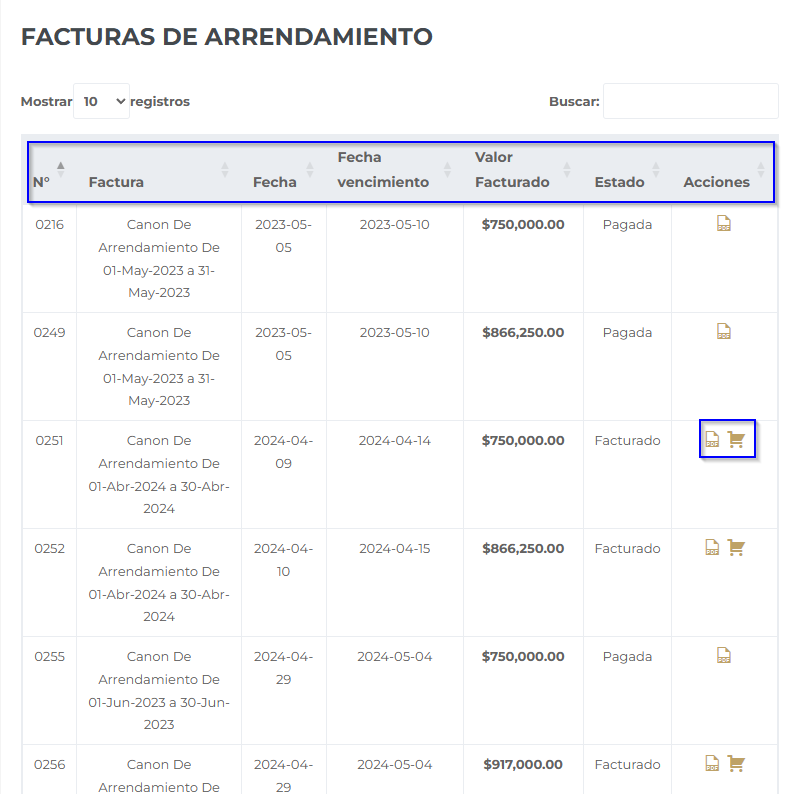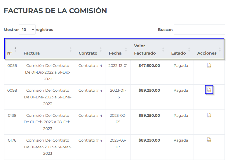 1. Ubique la factura que desea visualizar y/o descargar.