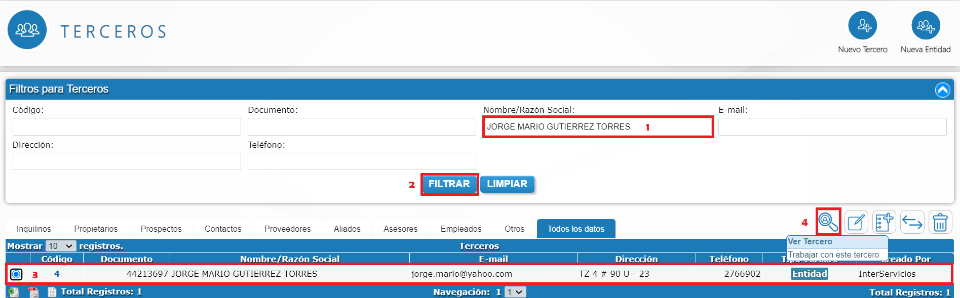 Paso 2: Consulte el tercero ya sea persona o entidad.